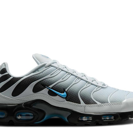 La Nike Air Max Plus Grey University Blue Black propose un look équilibré et moderne, jouant sur un mélange de gris clair, de bleu universitaire et de noir. La célèbre cage ondulée se dessine en noir contrastant sur une base grise élégante, tandis que les accents bleu apportent une touche de fraîcheur dynamique. La semelle blanche et la semelle extérieure noire complètent cette silhouette iconique avec raffinement.