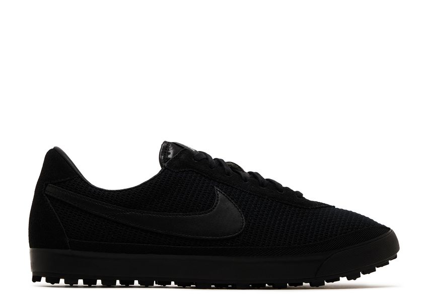 Avec la Nike Astro Grabber SP Black, Bode revisite une silhouette oubliée du catalogue Nike des années 70, lui insufflant une nouvelle vie entre nostalgie et avant-garde. Originalement conçue pour le football américain sur gazon synthétique, l’Astro Grabber renaît ici dans une version premium, fidèle à l’esprit vintage cher à la créatrice Emily Bode Aujla. Le coloris noir profond, contrasté par une semelle blanche texturée, ancre cette paire dans une esthétique intemporelle et artisanale.